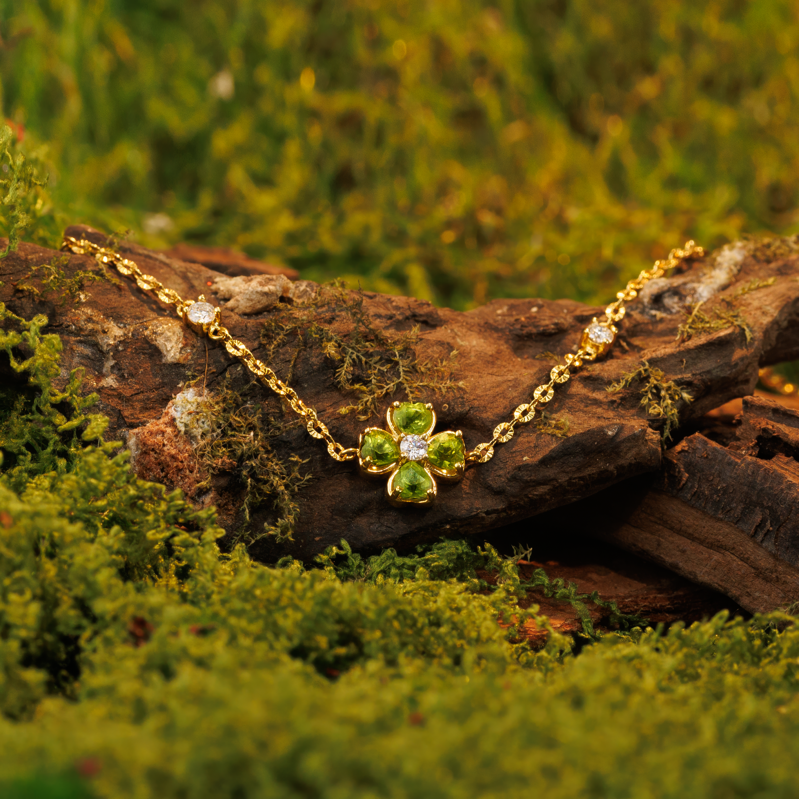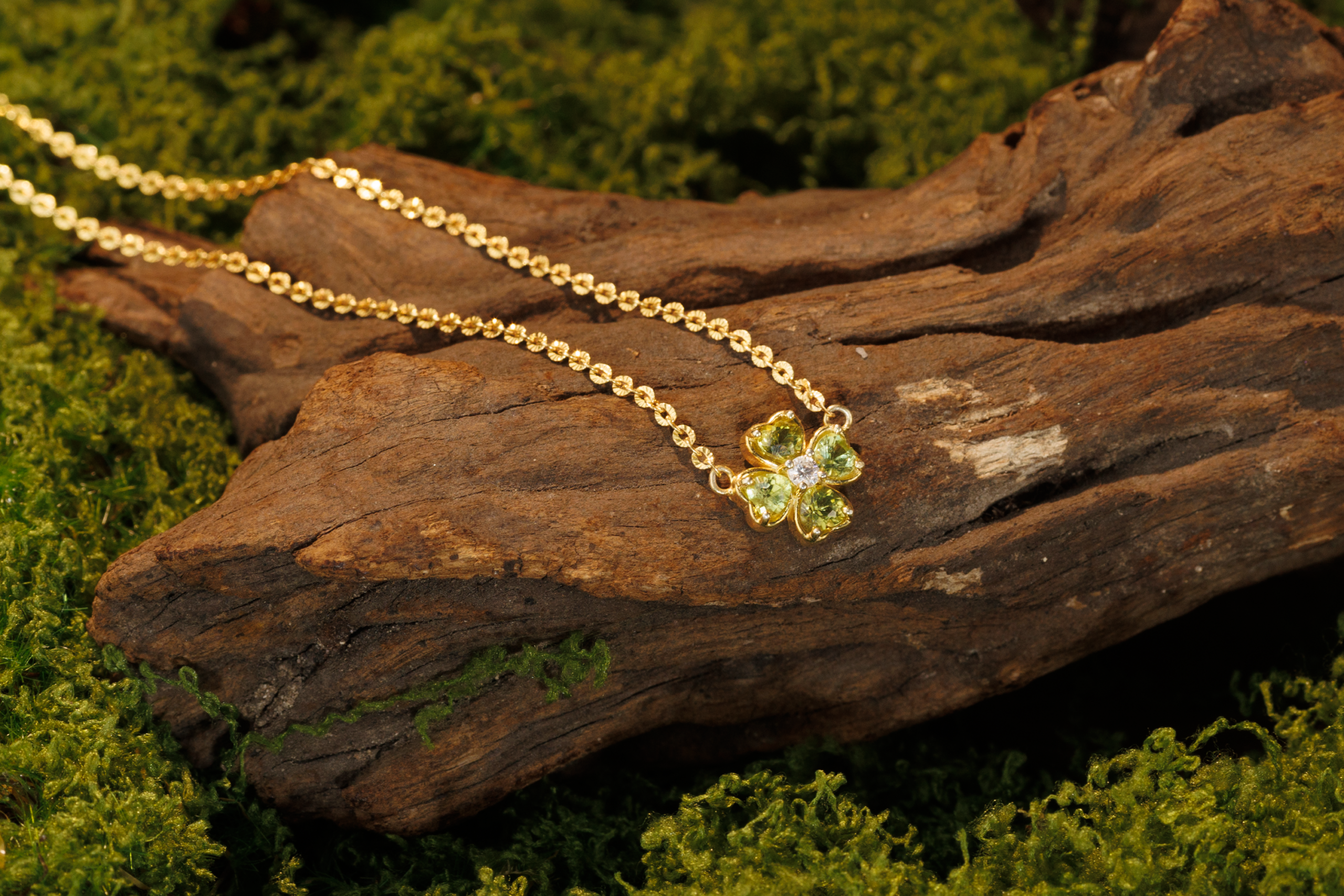Materials: 10k Gold plated 925 sliver– Cord length: 500 mm– Extension cord length: 30 mm– Main stone type: Peridot– Main stone cutting style: Heart Cut– Size of main stone: LxW: 6×4 mm– Secondary stone type: CZ– Number of extra stones: 2 stones– Secondary stone cutting type: Brilliant Cut– Side stone size: Diameter 4 mm– Clasp type: Clasp hook with tag engraved with Fonix Spiri Logo.
